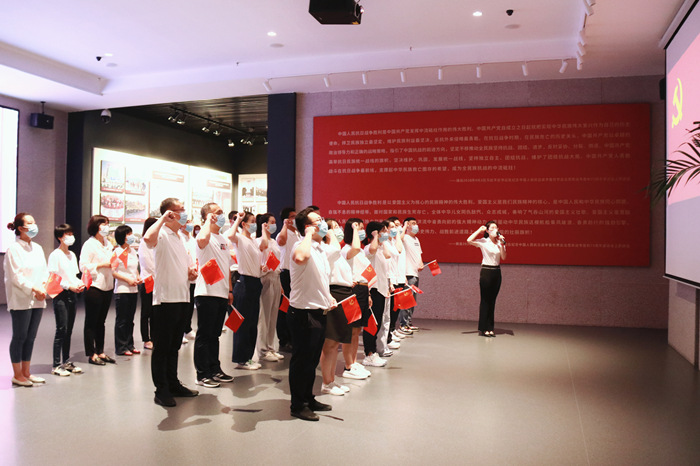 在展館內(nèi),氣氛嚴(yán)肅莊重,全體黨員整齊列隊,高舉右拳,面向鮮紅的黨旗,以昂揚的斗志和飽滿的熱情,鏗鏘有力地宣讀入黨誓詞,發(fā)出錚錚誓言。每一位黨員的心靈受到震撼和洗禮,更加堅定了為共產(chǎn)主義事業(yè)而奮斗的理想信念。