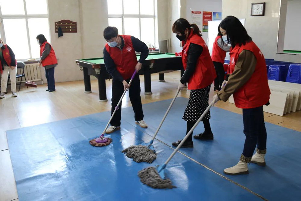 此次活動(dòng)圍繞清掃社區(qū)居民活動(dòng)室展開(kāi)。下午1點(diǎn)30分,航空集團(tuán)25名黨員及入黨積極分子準(zhǔn)時(shí)到達(dá)美地社區(qū),大家迅速穿上醒目的志愿者紅馬甲,分工合作起來(lái)。活動(dòng)現(xiàn)場(chǎng),志愿者們積極投入到清掃社區(qū)活動(dòng)室地面、清除衛(wèi)生死角、擦拭公共展板等工作中。此外黨員志愿者們?cè)谏鐓^(qū)工作人員的帶領(lǐng)下,搬桌子、掛條幅、擺凳子,圓滿完成美地社區(qū)即將召開(kāi)黨員大會(huì)的前期布置工作。
